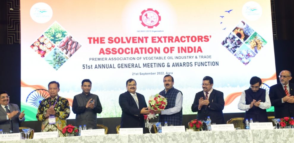 आगरा में बुधवार 21 सितम्बर को यहां सम्पन्न हुई सॉल्वेंट एक्सट्रैक्टर्स एसोसिएशन ऑफ इण्डिया एसईए की एजीएम के दौरान हुए विशेषज्ञो के पैनल डिस्कशन में एक बात उभर कर सामने आई कि इस बार मानसून के मेहरबान रहने से खरीफ में तिलहनी फसलों की बम्पर पैदावार की उम्मीद है। खास कर सरसों की फसल काफी अच्छी होगी। इसके अलावा इस एजीएम में किसानों के हित और फसलों के सुधार के लिए मिलेजुले प्रयासों पर जोर दिया गया। इसके साथ ही एसईए के सभी पदाधिकारियों ने फ्यूचर कारोबार को फिर से शुरू करने पर जोर देते हुए कहा, इसका उपयोग और कई अन्य लाभों की सहजता के कारण यह कारोबार कई कारोबारियों के लिए डिफॉल्ट कारोबारी विधि है।