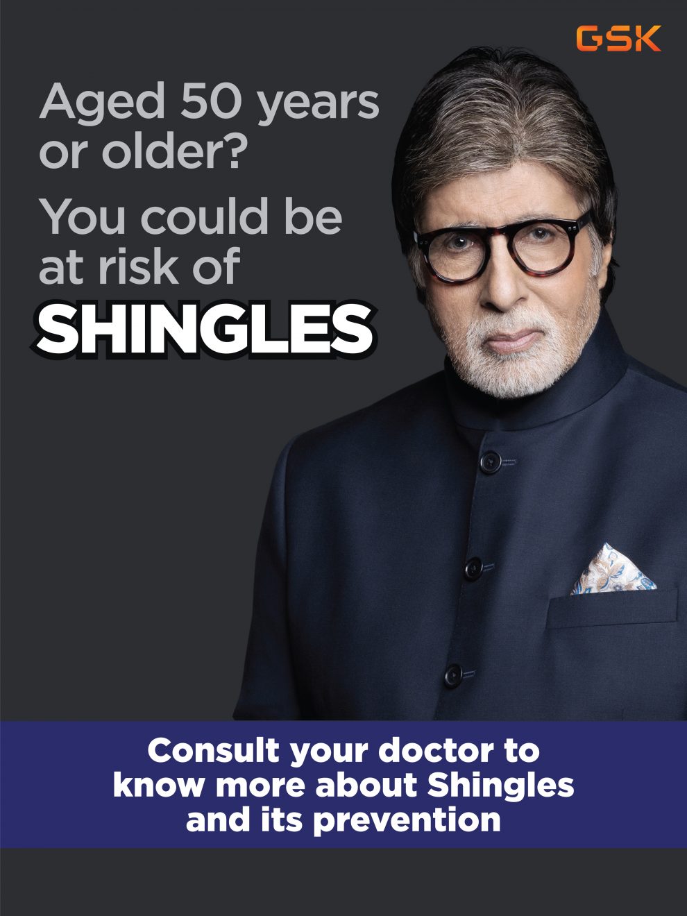 जीएसके ने शिंगल्स के प्रति जागरूकता बढ़ाने के लिए प्रतिष्ठित अभिनेता अमिताभ बच्चन के साथ गठजोड़ का एलान किया है। शिंगल्स एक दर्दभरी बीमारी है, जिससे 50 साल से अधिक उम्र का हर तीसरा वयस्क पीड़ित है।