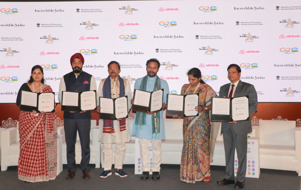भारत सरकार के केंद्रीय पर्यटन मंत्री श्री जी. किशन रेड्डी, पर्यटन मंत्रालय की सचिव वी. विद्यावती, अतिरिक्त सचिव श्री राकेश कुमार वर्मा और एयरबीएनबी इंडिया, साउथईस्ट एशिया, हांगकांग एवं ताइवान के जनरल मैनेजर अमनप्रीत बजाज की उपस्थिति में एमओयू पर हस्ताक्षर किया गया।इसका उद्देश्य भारत कीविरासतके सांस्कृतिक महत्व को रेखांकित करना और विविध विरासतके माध्यम से पर्यटकों को यहां की यात्रा के लिए प्रोत्साहित करना है।