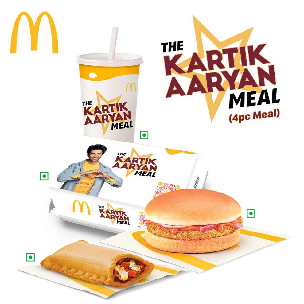 ट्रैविस स्कॉट मील से लेकर बीटीएस मील जैसे मैकडॉनल्ड्स के ‘प्रसिद्ध ऑर्डर’ प्लेटफॉर्म को वैश्विक सफलता मिली है। यह प्लेटफॉर्म अब ‘कार्तिक आर्यन मील’ के रूप में भारत में आ रहा है। ‘कार्तिक आर्यन मील’ में कार्तिक के पसंदीदा मैकडॉनल्ड्स मेनू आइटम शामिल हैं, जिसमे क्लासिक मैकआलू टिक्की बर्गर, चीज़ी फ्राइज़, रेगुलर पेय के साथ पसंदीदा पिज़्ज़ा मैकपफ, 4-पीस मील के रूप में उपलब्ध है। फैन्स के लिए, यह 4-पीस मील एक विशेष कार्तिक आर्यन-थीम पैकेजिंग में उपलब्ध होगा, जिसमे QR कोड के माध्यम से ग्राहक अपने पसंदीदा सेलिब्रिटी, कार्तिक आर्यन, के साथ वर्चुअल सेल्फी ले सकते है।